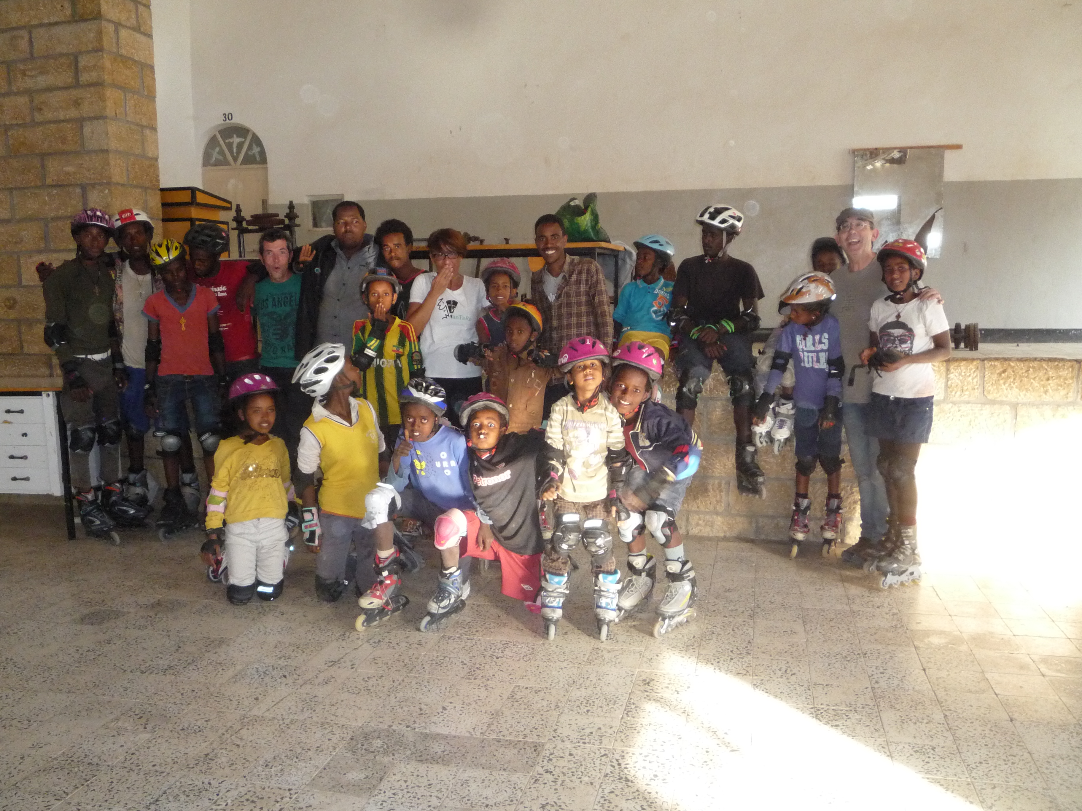 Han trabajado duramente en la Escuela de Patinaje en todas las tareas previstas, fundamentalmente en la formación de los monitores locales y en el asentamiento de la infraestructura para que se desarrollen las actividades de patinaje.