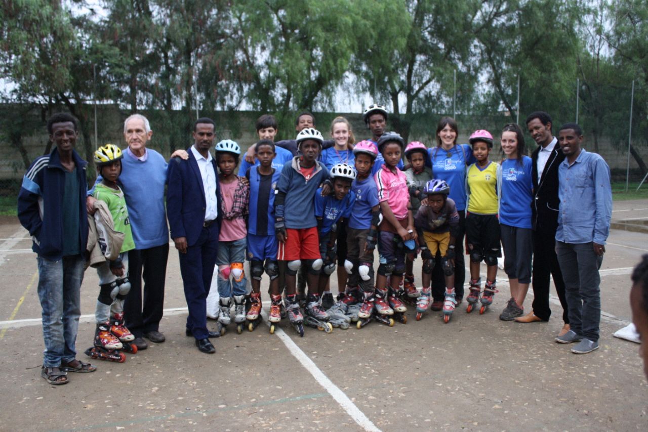 Os ponemos unas fotos que nos mandan de los chiquillos en plena actividad y del grupo de voluntarios de la Escuela de Patinaje con los organizadores y con nuestro querido Ángel Olaran- Abba Melaku.