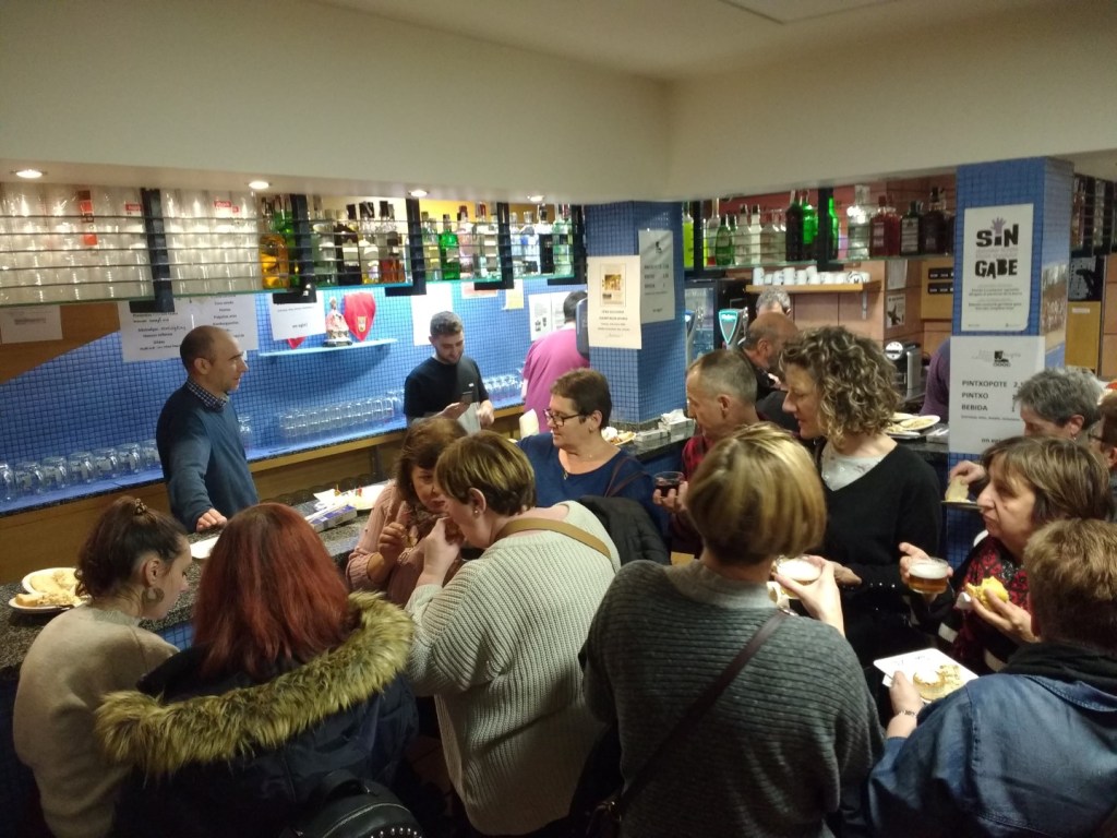 Jueves 19 de diciembre. LLenazo de nuevo en la Estafeta para degustar los pintxos que nos trajeron tantas amigas y amigos de Patinar en Etiopía. Gracias a la Panadería Arrasate de Villava por donarnos sus panes. Se sirvieron más de 700 riquísimos pintxos caseros en la barra del Muthiko Alaiak que nos abrió la Peña como si fuera nuestra casa y puso a nuestra disposición toda su infraestructura humana y material. Agotamos todo lo preparado y nos fuimos felices después de recibir el apoyo de tantas amigas y amigos solidaros con nuestro proyecto en Etiopía.