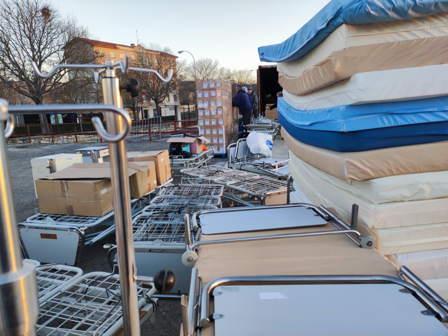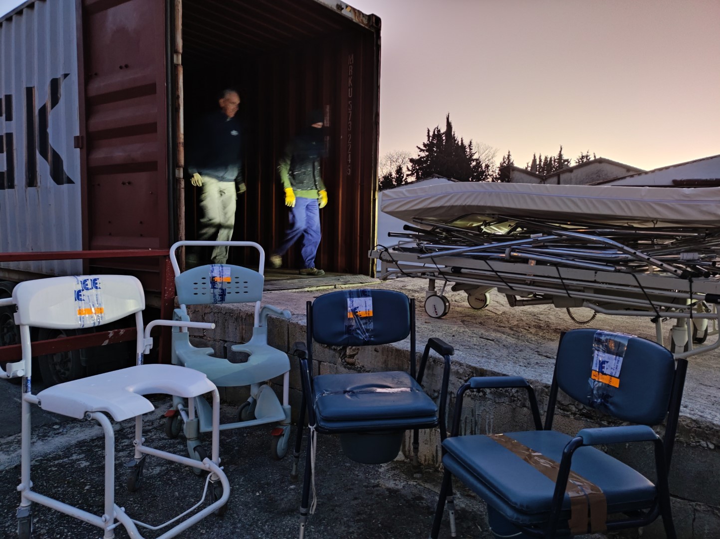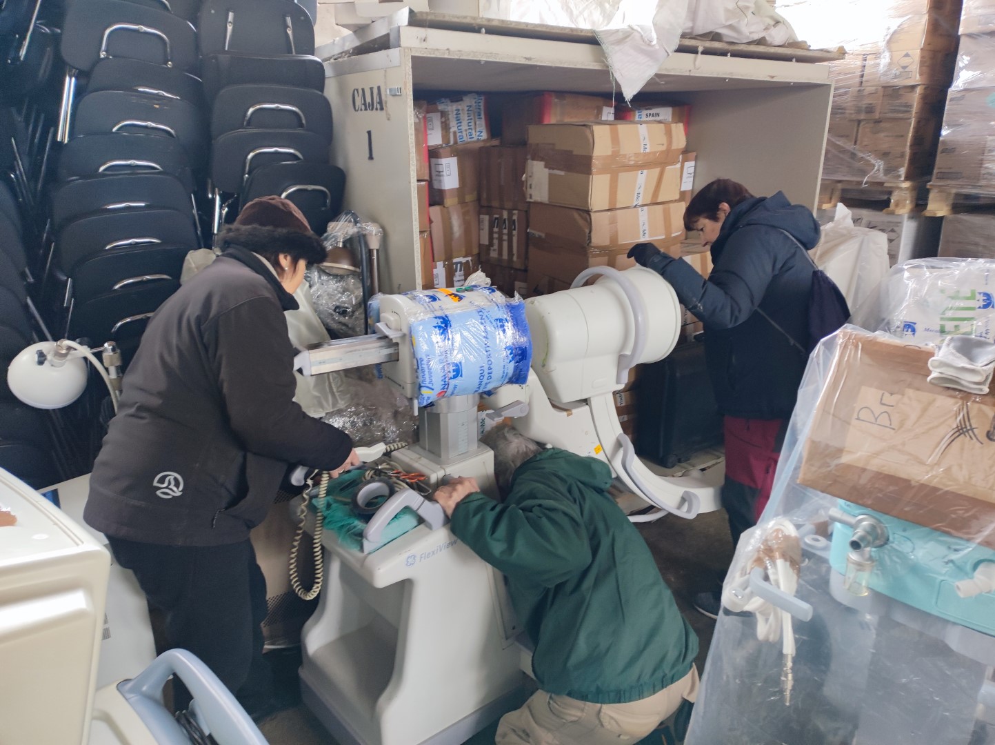Todo el material recopilado ha sido donado por diversas instituciones y empresas. Las máquinas de electromedicina llegadas desde la Fundación Allegro con origen en los hospitales de Cáceres y Plasencia y el resto de material pesado, como camas, camillas, colchones, mesillas, sillones, etc., procedentes del Hospital Universitario de Navarra y de Osakidetza, También se ha cargado un paquete protésico donado por la Asociación ANDADE y por diversas ortopedias, además de materiales de rehabilitación. Se ha completado con equipos informáticos para la gestión y uso médico en el centro. Todo ello completado con utensilios médico quirúrgicos de todo tipo donados por diversas instituciones y empresas.